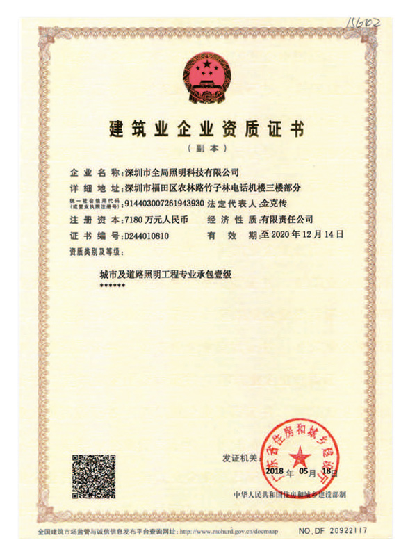 51视频网站是一家专注于城市及道路照明规划设计与工程施工、为城市创建舒适光环境的现代企业。公司成立于2001年2月,注册资金7180万元。具有城市及道路照明工程专业承包施工壹级、照明工程设计专项甲级设计资质。